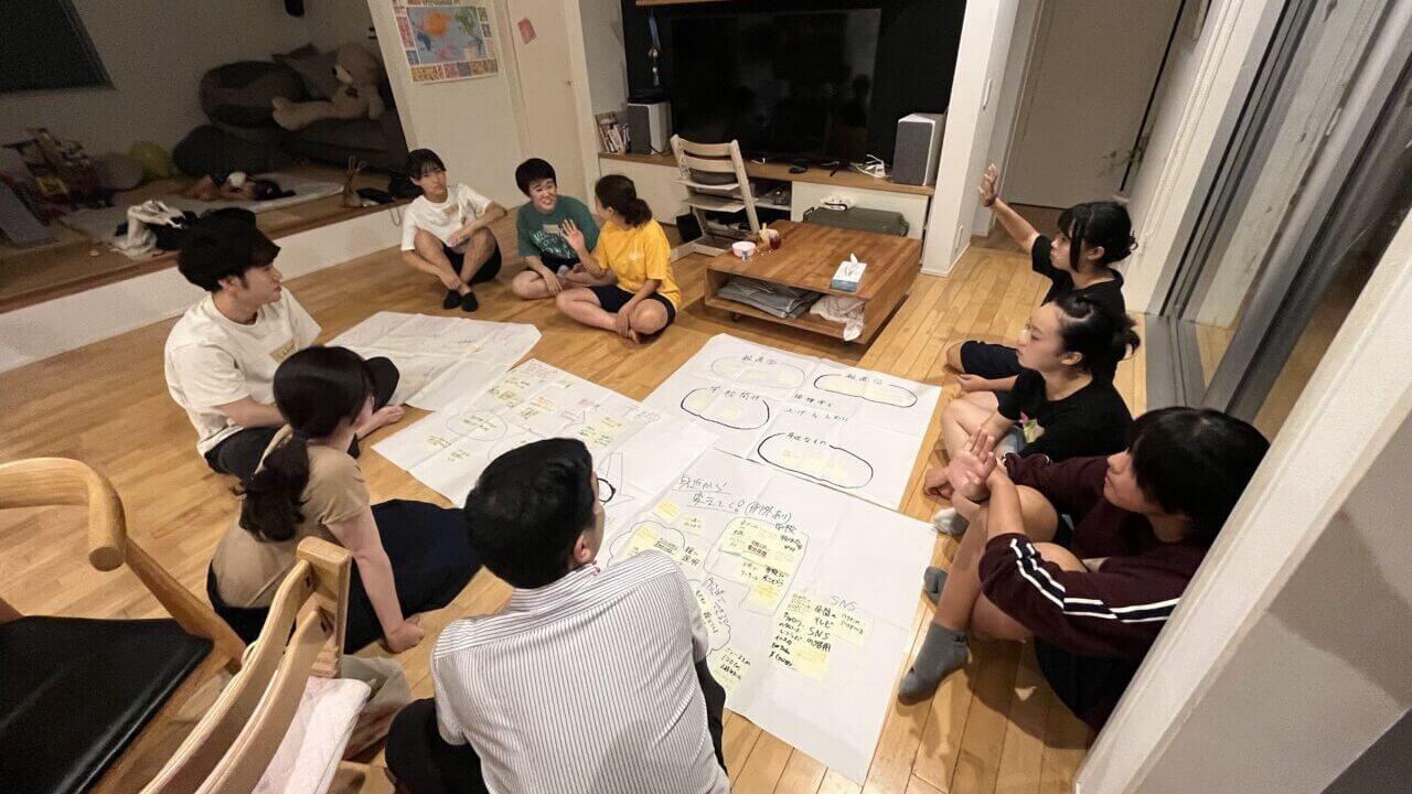 プレゼンで発表した内容を実際に実現してみない?ということで手を挙げた10名が、その後も継続的に打ち合わせ。場所は塾長の小池家宅であったり、ファミクリ内であったり。