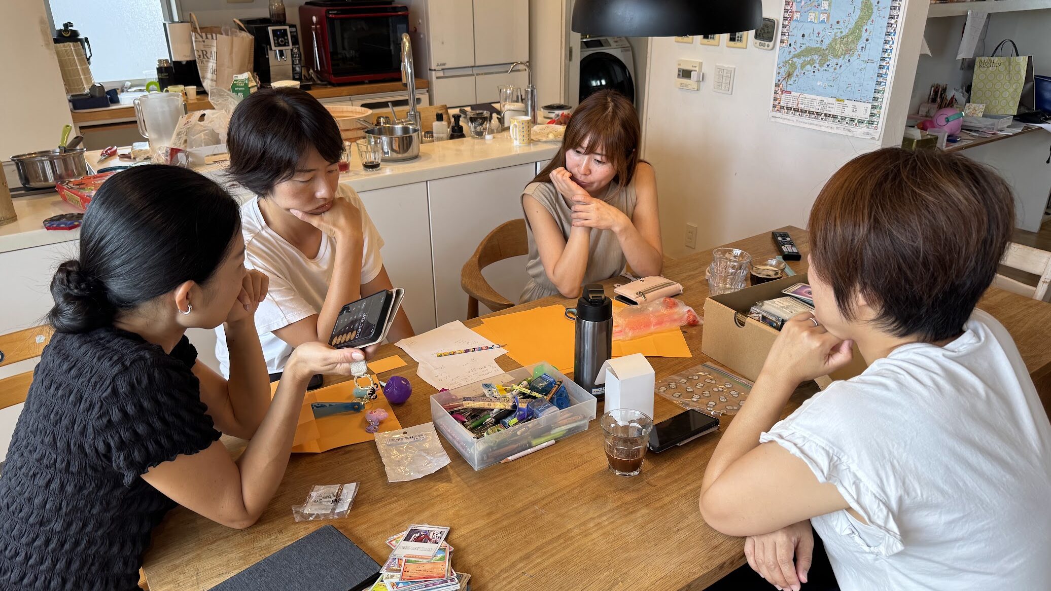 プレゼンで発表した内容を実際に実現してみない?ということで手を挙げた10名が、その後も継続的に打ち合わせ。場所は塾長の小池家宅であったり、ファミクリ内であったり。